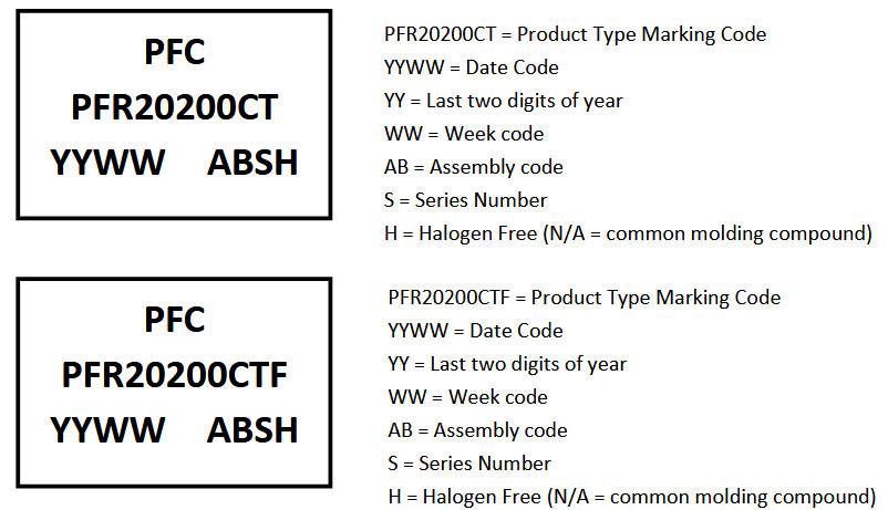 正面絲印應為兩行:首行“PFR20200CTF”,次行“YYWW ABSH。